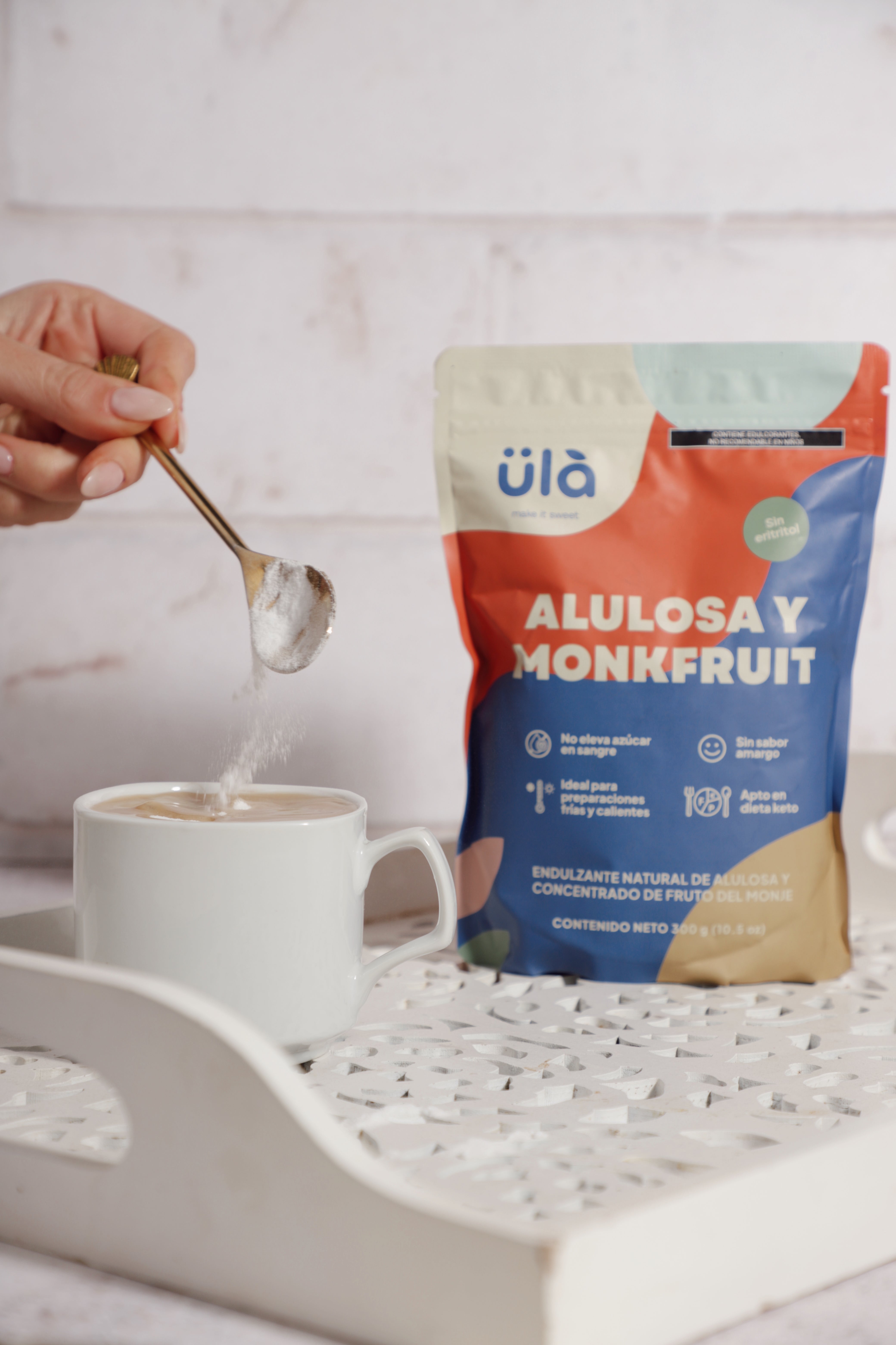 Ula está elaborado a base de monkfruit (fruta del monje) y alulosa, dos ingredientes de origen natural que ofrecen un dulzor delicioso sin calorías ni efectos negativos en el azúcar en sangre.